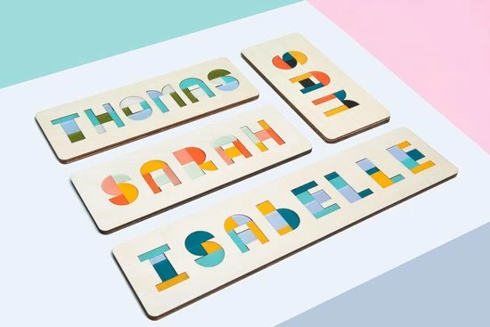 Eerst te gebruiken als naambordje en leuke decoratie op de kinderkamer. En vervolgens voor de jonge peuter een leuke uitdaging om te maken. Goed voor zowel het inzicht als de fijne motoriek. Elke letter bestaat uit meerdere gekleurde stukjes, die op meerdere plekken passen. Deze originele houten puzzel is verkrijgbaar in 6 prachtige kleurencombinaties. Kortom, met deze kinderpuzzel geef je de kleine een zeer persoonlijk cadeau!