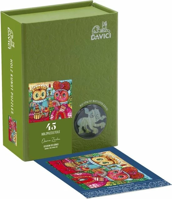 De buitengewoon bijzondere houten puzzels van DaVICI zullen u betoveren. De puzzelplaat komt tot leven tijdens het puzzelen. De artistieke details van de stukjes zorgen ervoor dat u speciale figuren zult ontdekken: er zijn figuren van mensen, dieren, gebouwen en fantasiewezens. Duik in de wereld van DaVICI en puzzel de schilderijen van verschillende kunstenaars, waarin ook de puzzelstukken een eigen verhaal vertellen.
