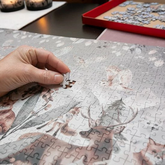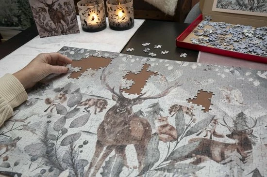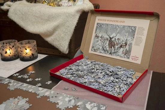 De Puzzelbox ‘Winter Wonderland’ bevat een unieke 1000-stukjes legpuzzel van maar liefst 68 x 48 cm.
