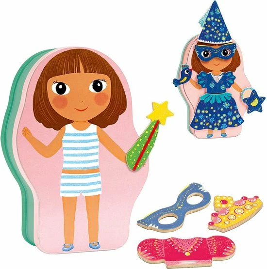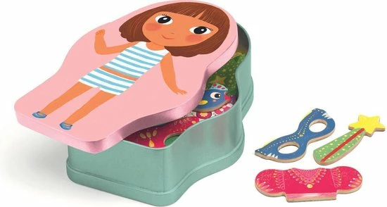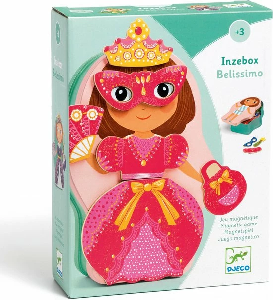 Dit creatieve spel ‘Inzebox Belissimo’ van het Franse merk Djeco nodigt peuters uit om zelf fantasiefiguren en dieren te maken! De verschillende houten magneten, in de vorm van grote ogen, puntige oren, schattige snuitjes en meer, kunnen door peuters gemakkelijk op het metalen doosje worden geplakt. Creëer keer op keer een nieuw fantasie beest! Na het spelen kunnen de magneten opgeruimd worden in het blikje.