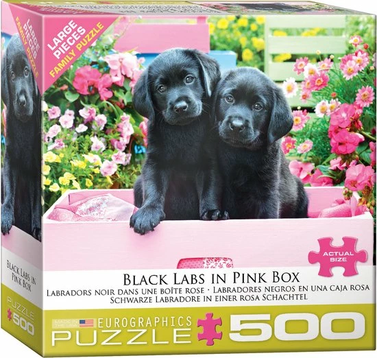 Eurographics Zwarte Labradors Pups In Roze Doos – 500 Stukjes