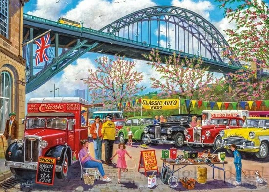 Een bezoekje aan de Oldtimershow is altijd de moeite waard. Maar hier in Newcastle, onder de indrukwekkende Tyne Bridge is het dubbel genieten! Gibsons levert puzzels met fraaie illustraties in diverse puzzelthema’s en verschillend aantal puzzelstukjes. De puzzels zijn gemaakt van 100% gerecycled karton en worden gemaakt van de dikste kartonsoort die voor puzzels beschikbaar is. Hierdoor zijn de puzzels gegarandeerd goed voor vele malen puzzelplezier! Het Britse familiebedrijf is opgericht in 1919 en bestaat al meer dan 100 jaar.