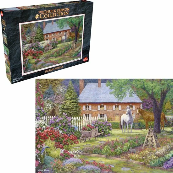 Geniet van deze Chuck Pinson puzzel van 1000 stukjes. Een goed onderhouden tuin is op zich al een kunstwerk, maar in deze puzzel komen de schoonheid en genot van tuinieren duidelijk naar voren. Met zijn tijdloze schoonheid zal deze puzzel je zeker een middagje puzzelplezier bezorgen!