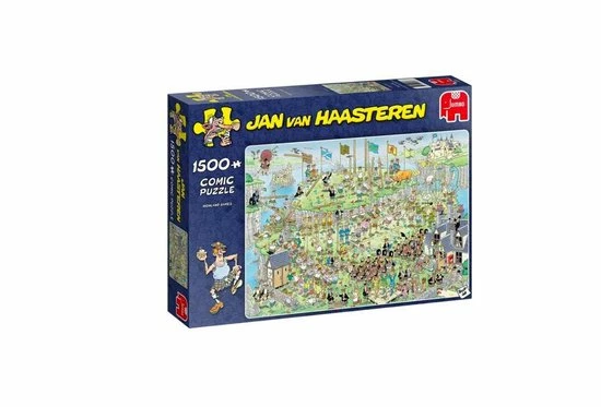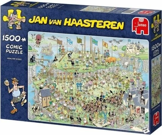 Jan van Haasteren Highland Games Puzzel 1500 Stukjes is een van de nieuwe puzzels van Jan van Haasteren. Tijdens deze Highland Games verloopt niet alles even soepel. Highland Games van Jan van Haasteren is een puzzel met 1500 stukjes voor de echte Jan van Haasteren fans! Zodra je Jan van Haasteren Highland Games met 1500 Stukjes begint te puzzelen stuit je op het ene na het andere hilarische tafereel.