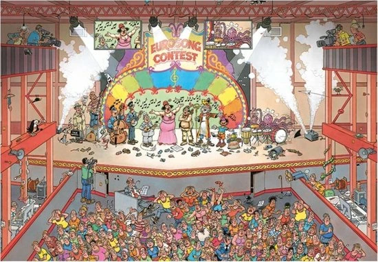 Een schitterende Jan van Haasteren puzzel van het Eurovisie songvestival met 1000 stukjes. De Nederlandse editie van het Eurovisie songfestival gaat voorlopig niet door. Maar dat mag de pret niet drukken voor de grote puzzellaars, want met deze puzzel leg je het Eurovisie songfestival neer op jouw tafel. Ook deze puzzel van Jan van Haasteren bevat enorm veel specifieke details. Weet jij waar ze zitten?