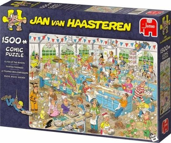 Misschien krijg je trek van Taarten Toernooi Jan van Haasteren Puzzel 1500 Stukjes! Een hilarische puzzel, want tijdens dit taartentoernooi gebeurt er van alles! Jan van Haasteren (geboren in 1936) tekent al tientallen jaren grappige platen exclusief voor Jumbo puzzels.