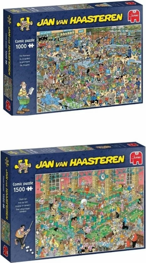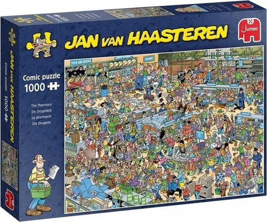 Jan van Haasteren De Drogisterij Puzzel 1000 Stukjes is een van de nieuwe puzzels van Jan van Haasteren. In deze Drogisterij verloopt niet alles even soepel. De Drogisterij van Jan van Haasteren is een puzzel met 1000 stukjes voor de echte Jan van Haasteren fans! Zodra je Jan van Haasteren de Drogisterij met 1000 Stukjes begint te puzzelen stuit je op het ene na het andere hilarische tafereel.