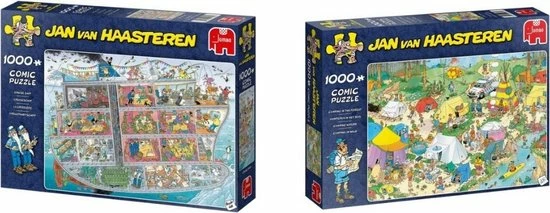 Jan van Haasteren tekent al decennia lang humoristische, kleurrijke platen met veel detail. De doorgewinterde fan zoekt in elke puzzel direct naar de haaienvin, hét handelsmerk van Jan. Om aan de grote vraag naar Jan van Haasteren puzzels te voldoen, wordt er ook getekend door ‘Jan van Haateren studio’ tekenaars. Samen met Jan werken deze tekenaars aan nieuwe dolkomische platen. In de Jumbo collectie vind je tientallen Jan van Haasteren puzzels van 150 tot 3000 stukjes. Heel veel puzzelplezier!