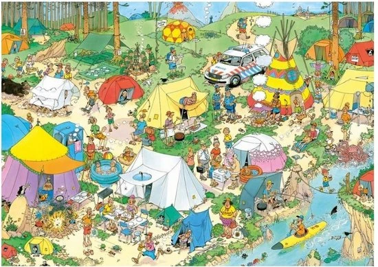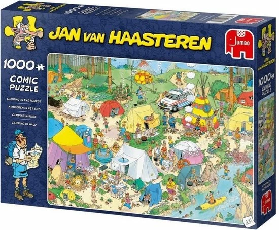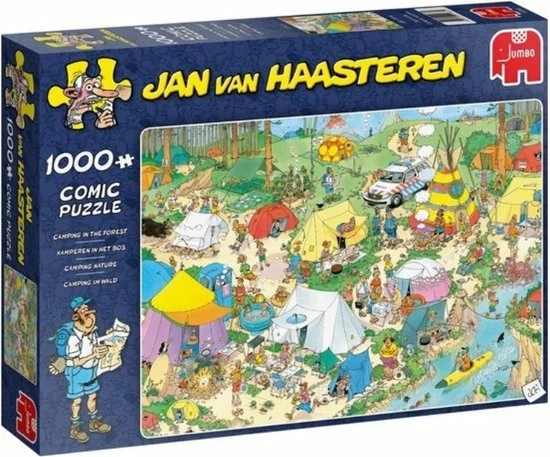 Jan van Haasteren Kamperen in het Bos met 1000 Stukjes is een van de nieuwe puzzels van Jan van Haasteren. Tijdens het kamperen verloopt niet alles even soepel. Kamperen in het Bos van Jan van Haasteren is een puzzel met 1000 stukjes voor de echte Jan van Haasteren fans! Zodra je Jan van Haasteren Kamperen in het Bos met 1000 Stukjes begint te puzzelen stuit je op het ene na het andere hilarische tafereel.