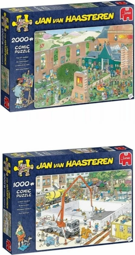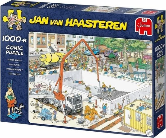 Deze puzzel van 1000 stukjes gaat over een gebouw wat bijna klaar is. De puzzel is getekend door de beroemde Jan van Haasteren, die al jaren exclusief voor Jumbo humoristische puzzels tekent.