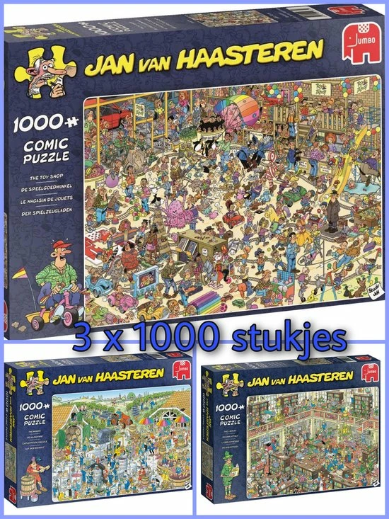 Jumbo Jan Van Haasteren Puzzelvoordeelset SPEELGOEDWINKEL 1000, WIJNMAKERIJ 1000, DE BIBLIOTHEEK 1000