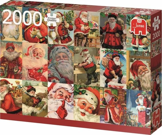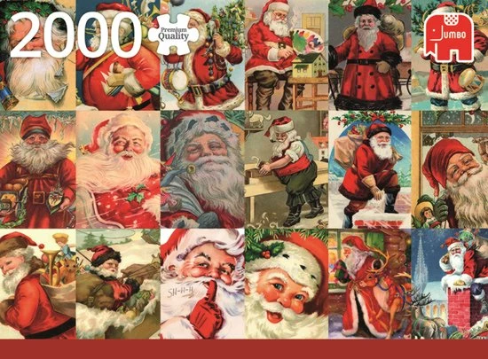 Vintage Kerstmannen Premium Collection Jumbo Puzzel 2000 Stukjes. Met de Premium Collection legpuzzels van Jumbo beleeft u uren puzzelplezier. Jumbo staat voor ruim 160 jaar kwaliteit en vakmanschap. Voor het maken van de puzzels wordt alleen gebruik gemaakt van het allerbeste gerecyclede karton van verantwoorde herkomst. De puzzels worden gesneden met speciale dunne messen. Hierdoor behoudt elk puzzelstukje zijn optimale pasvorm en zorgen de smalle naden voor een extra glad en bijna naadloos eindresultaat.