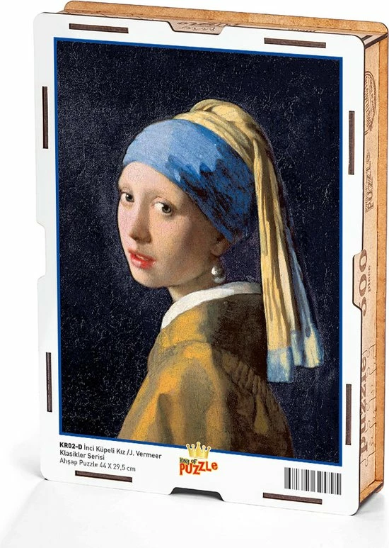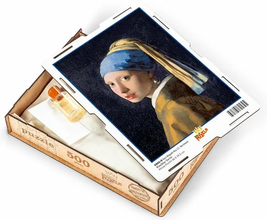 Meisje met de parel – Johannes Vermeer houten puzzel 500 stukjes. Dankzij de lasersnijprecisie van 200 micron passen alle stukjes perfect in elkaar.