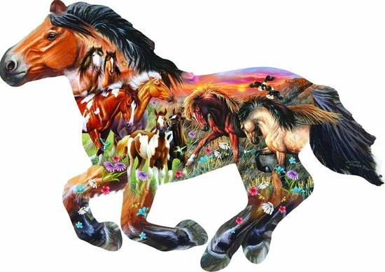 Contour legpuzzel in de vorm van een Paard met een tekening van C. Fisher.