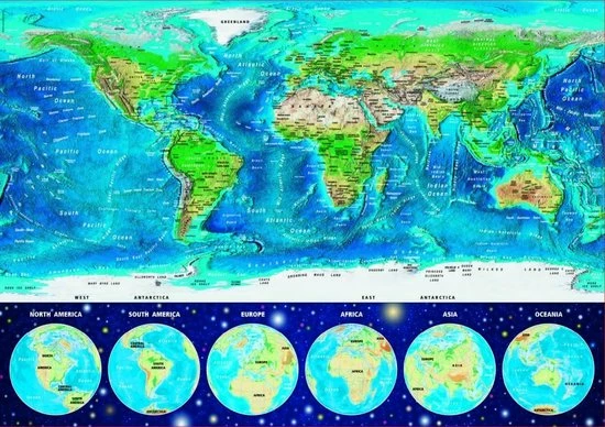 Puzzel van 1000 stukjes – wereldkaart met fluoriserend-effect