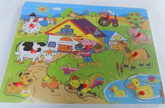 Merkloos Houten Puzzel Met Knopjes , De Boerderij