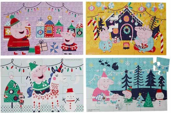 Merkloos Kerst Peppa Pig 4 In 1 Puzzel – Multicolor – Karton – 19 X 29 Cm – 3+