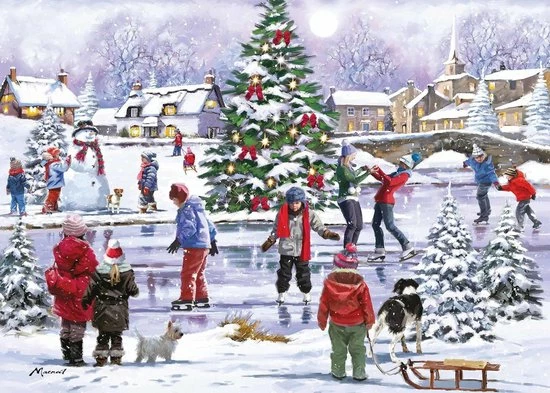 Puzzel Ice Skating Fun 1000 stukjes. Afmeting puzzel (rechthoekig): 68 x 49 cm.