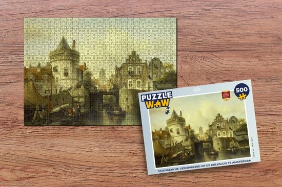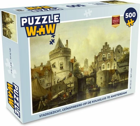 Puzzel 500 stukjes – Stadsgezicht, geïnspireerd op de Kolksluis te Amsterdam – Legpuzzel