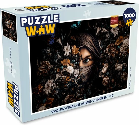 Puzzel 1000 stukjes – Vrouw – Luxe – Bloemen – Vlinder – Portret – Puzzels