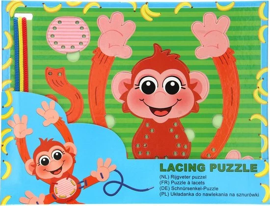 | Verpakkingsinhoud | 1, x, Rijgveter, puzzel, aap, met, 3, kleuren, veter, rood, -, geel-, blauw |