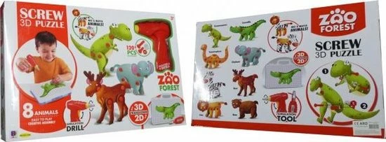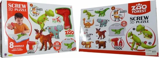 3D schroefpuzzel met 8 wilde dieren en schroefmachine op batterijen