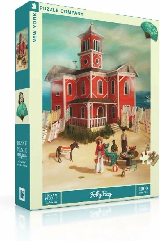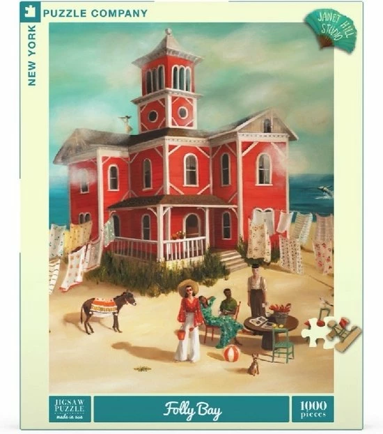 De illustratie op deze puzzel van New York Puzzle Company is geschilderd door Janet Hill en neemt je mee naar een een strandhuis waar een groep vrienden en een paar harige vriendjes samen komen in Folly Bay, vlak voor een storm alles verandert. De puzzel heeft 1000 stukjes en heeft een linnen stijl afwerking zodat de puzzel minder glimt. Aanbevolen leeftijd: 13+ jaar.