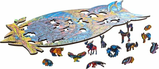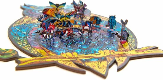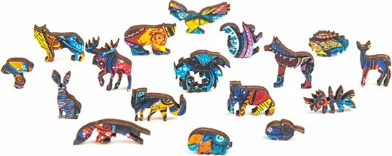 Elk onderdeel past op een ander onderdeel dat er totaal anders uitziet. Het is een hele uitdaging om voor verschillende koppelingen dezelfde aansluiting te vinden. Aan de ene kant lijken ze op elkaar, maar aan de andere kant passen ze niet bij elkaar. Dit is het unieke van onze puzzels. Deze set houdt niet alleen een gewone puzzel in; het vereist een zeer doordacht proces. Het doel hiervan is om de geschikte koppelingen te vinden en de scène van het bosleven op uw tafel te creëren. Het is een heel universum en een spannend avontuur in de wereld van Unidragon.