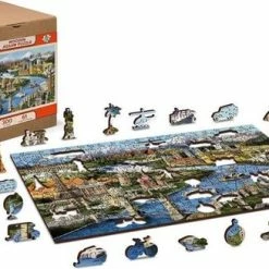 Wooden City Wereld Bezienswaardigheden XL – Houten Vormpuzzel – 52×38 Cm – 600 Stukjes
