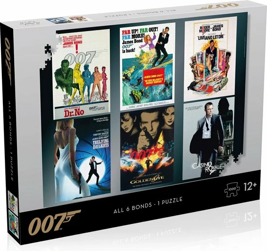 Puzzel erop los met deze James Bond puzzel van maar liefst 1000 stukjes. In deze puzzel staan alle debuut poster van de James Bond acteurs. U ziet de eerste film die elke acteur gemaakt heeft.