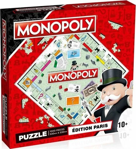 Bezoek de iconische en historische stad Parijs in deze speciale MONOPOLY-puzzel – Zet dit iconische MONOPOLY-spelbord in elkaar op basis van de klassieke editie van Parijs – Inhoud: 1 puzzel van 1000 stukjes – Vanaf 14 jaar – Geleverd aan de ‘eenheid’.