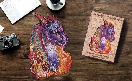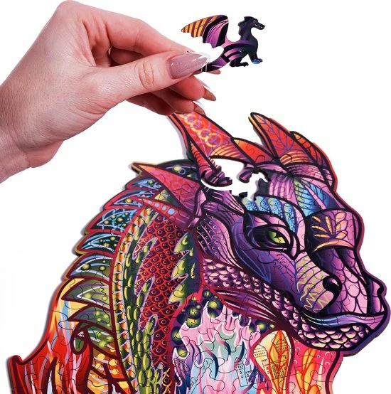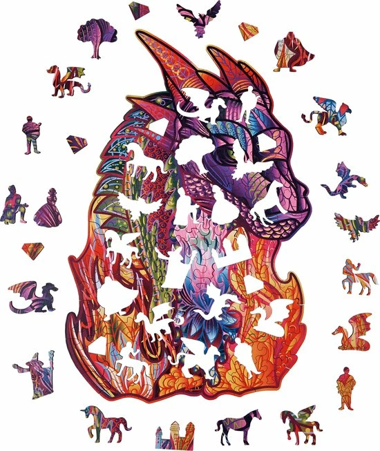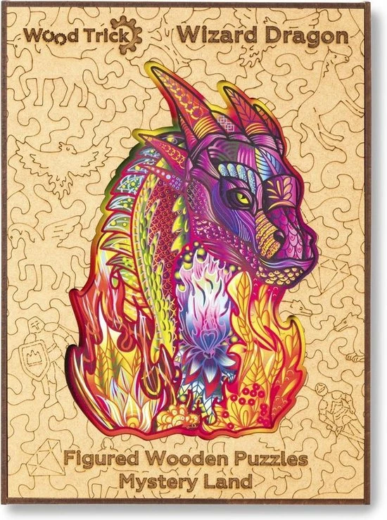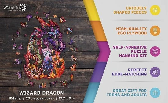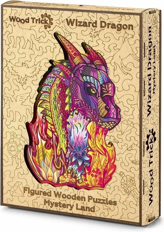 - Product: Wood Trick Tovenaar Draak – Houten Vormpuzzel – 35×23.6 cm – 184 stukjes