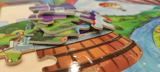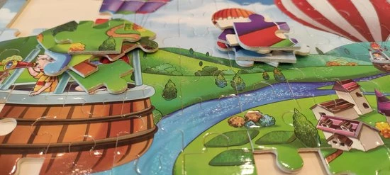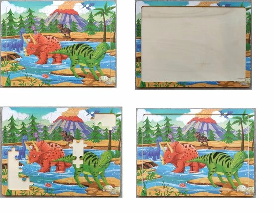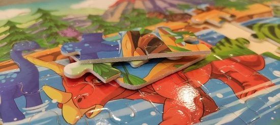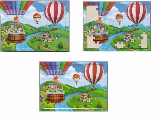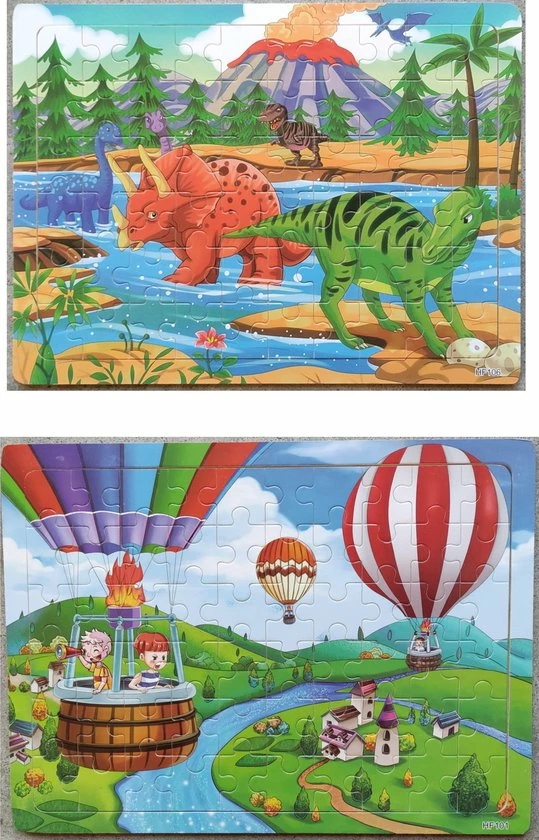 Set van 2 houten legpuzzels van Dino en Luchtballon . Alle twee de puzzels bestaan uit 60 stukjes.
